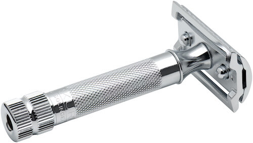 The heavy weight of the razor gives more gripping power and a smooth shave. The generous blade gap allows high soap flow protecting the razor head from clogging with cut hair or lather residue.