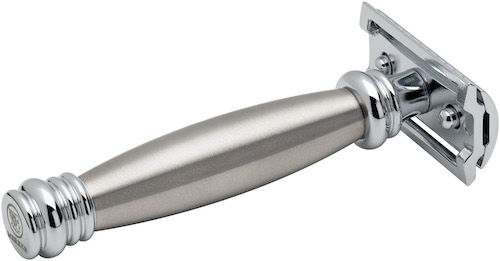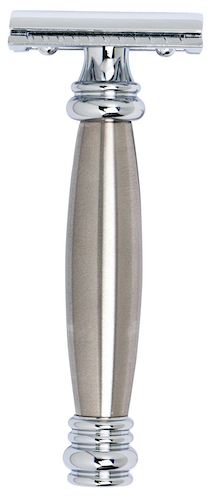 The MERKUR 43C with its brushed stainless steel keg barreled handle is one of heaviest razors offered by MERKUR. The weight of this razor aids in pulling the blade effortlessly through the toughest of beards while the close comb head allows for a close shave without being overly aggressive. The weight of this razor coupled with MERKUR’s standard shaving head provides a slightly aggressive shave, no extra pressure needed. Includes one MERKUR double edge blade.