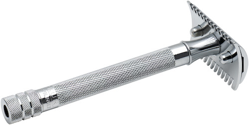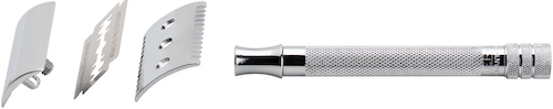 Mit dem wendigen Griff geht die Rasur fließend von der Hand und der offene Zahnkamm ist die Urversion der klassischen Nassrasur, auch für lange Haare. Die schmalen Zähne führen den Rasierkopf sicher und dämpfen die Schwingungen der Klinge. Der gute Seifenfluss schützt vor Verstopfungen mit Haar- oder Schaumresten.