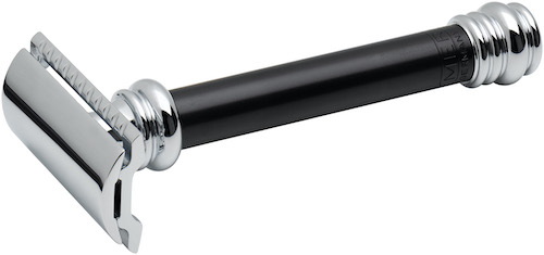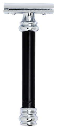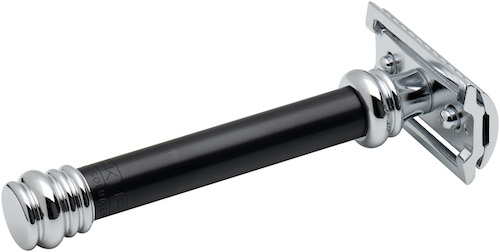 Die Entwicklung des 38C stammt aus den frühen 2000ern. Der zweifarbige Griff mit dem schwarz eloxierten Aluminium unterstreicht das moderne Design. Mit seinem hohen Gewicht führt er die Klinge wie von selbst. Der bewährte Klingenspalt führt Seife und Haare weg von der Schneide.
