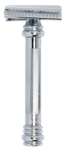 Der MERKUR 39C ist ein Schrägschnittrasierer für drahtigen und dichten Bartwuchs. Mit seinem hohen Gewicht und dem schrägen Rasierkopf bewältigt er selbst schwierigste Aufgaben mühelos und gründlich. Seine Fans nennen ihn ‘‘Sledgehammer‘‘, den Vorschlaghammer für grobe Aufgaben. Mit dem im ‘‘Barber Pole‘‘ gerändelten Griff hast du ihn sicher und bequem in der Hand.