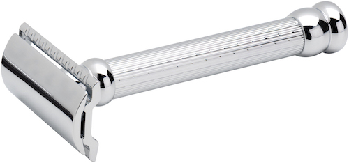 Der lange Griff gibt guten Halt auch mit großen Händen. Durch den Klingenspalt fließen Haare und Seife gut ab und die Schneide bleibt frei.