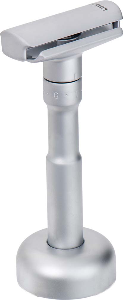 The MERKUR 4007 is a matt chrome-plated stand for MERKUR Futur 700. It creates order in the bathroom and presents your DE razor.
